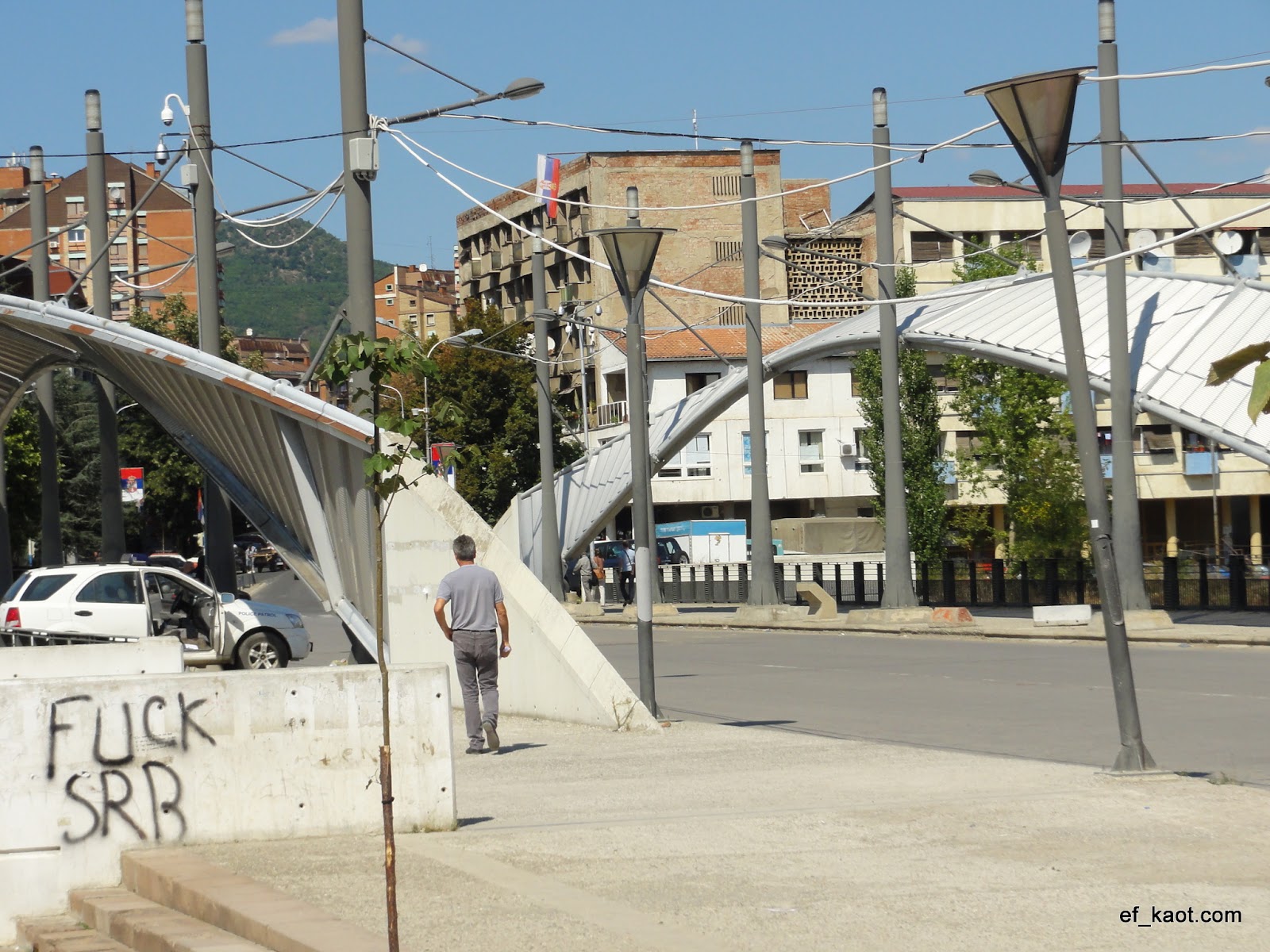 Nach Umstieg in Pristina war nach 3,5h im Summe Mitrovica erreicht. Hier ging es sogleich in Richtung Brücke, welche den kosovanischen mit dem wesentlich kleineren serbischen Stadtteil verbindet. Oder halt auch nicht, ein Überqueren der Brücke könnte diverse Missverständnisse nach sich führen. Grund, da Serbien den Kosovo anstatt eines souveränen Staates eher als eine abtrünnige serbische Enklave tituliert, wird von den Grenzern der kosovanische Einreisestempel aus dem Pass heraus gerissen, gefolgt von den Einreisemodalitäten nach Serbien. Das Zurückgehen ist keine große Sache, die kosovanische Grenzpolizei kennt das Spiel. Blöd nur, dass man Serbien nicht offiziell verlässt, wie gesagt, jene sehen den Kosovo nach wie vor als serbisches Staatsgebiet an. Sollte man später noch einmal nach Serbien einreisen wollen (und sei es nur im Zug auf Transit), hat man das Problem. Offiziell noch in Serbien gemeldet stellt sich die Frage, wie man Serbien ohne beglaubigte Ausreise verlassen hat. Möglicher Diskussionsbedarf mit den für Freundlichkeit und Verständnis bekannten serbischen Grenzbeamten, bei denen man sich nicht auf eine gemeinsame Sprache einigen kann, ließen mich von der Brückenquerung Abstand nehmen.