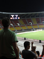 Die Zuschauer hatten in der ersten Halbzeit Ihren Spaß, nahmen das Ganze mit Humor. In der zweiten Halbzeit wurde es den Jungs dann doch zu peinlich, totales Fremdschämen, der Mob fühlte sich verarscht. 2x überaus interessante Gepflogenheiten von den Mikrostaatlern irritierten. Zum einen ausgeprägtes Zeitspiel trotz Rückstand, zum anderen die kläglichen Abstöße vom Torwart. Da kam kaum ein Ball über die Mittellinie. Bzgl. Stadion, riesen Kiste für das kleine Volk, Kapazität von 36.000 Leuten. Gefühlt 50m bis zum Spielfeld, die farbliche Sitzgestaltung spiegelte die Nationalflagge wieder, gelbe Sonne auf roten Untergrund. Meine berlinerische Begleitung aus dem Hostel war a bissl pissed off, er hatte sich trotz fussballerisches Neuland etwas mehr erhofft.